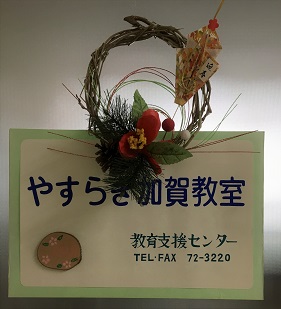 教室のドアには、昨年末に取り組んでいた正月飾りを掲げました。