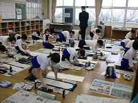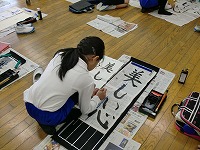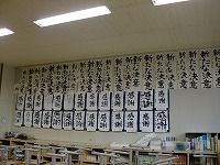 校内書き初め大会では、各学年真剣に取り組む様子が見られました。
