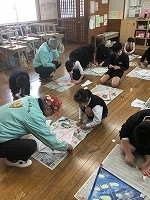 本日、1月22日(水)に5年生が凧作りをしました。毎年、「内灘凧の会」の皆さんが材料を用意してくださり、絵をかいたり、竹ひごを取り付けたり、糸を調節したりしてくださいます。