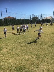 秋晴れの緑の運動場で頑張る子ども達の姿は、キラキラと輝いていました。みんな頑張ってください。