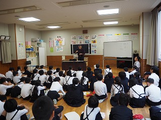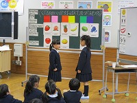 最初は、緊張気味だった子供達・・・でも、先生の質問やクイズに答える中で、自然と英語が飛び出していました。小学校で学んだ単語やフレーズは、中学校でも使えそうですね!