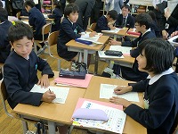 6年生の卒業まであと10日あまり、6年生がゲストティーチャーをお迎えして、卒業式で胸に飾る水引のコサージュを作りました。最初は紐を結ぶのに苦戦している様子が見られましたが、ゲストティーチャーの先生や友達に教えてもらいながら、きれいなコサージュができました。卒業の準備が進んでいくことが心強い半面、ちょっぴりさびしい思いです。