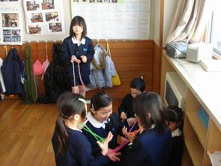 6年生の卒業まであと10日あまり、6年生がゲストティーチャーをお迎えして、卒業式で胸に飾る水引のコサージュを作りました。最初は紐を結ぶのに苦戦している様子が見られましたが、ゲストティーチャーの先生や友達に教えてもらいながら、きれいなコサージュができました。卒業の準備が進んでいくことが心強い半面、ちょっぴりさびしい思いです。