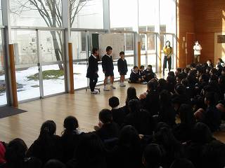 ステージでは一人ずつ将来の夢を語りました。その夢がかなうよう、中学校でも頑張ってください。