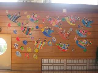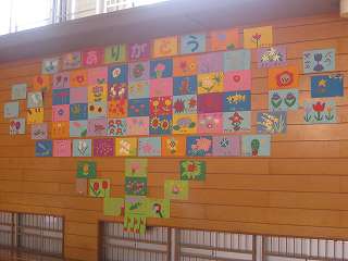 自分でデザインした紙に、骨組みをつけて、糸をつけて、凧が完成していきます。完成した凧は、さっそく運動場で飛ばしました。どの凧も、元気に走る5年生の後ろを、空高く飛んでいました。完成した凧は、5月の「世界凧の祭典」でもとばす予定です。日本海内灘砂丘凧の会の皆様、ありがとうございました。