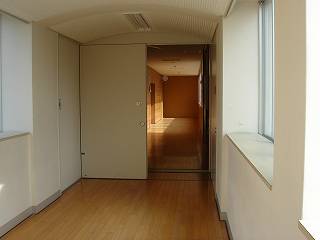 校長先生からは、「防火扉が閉まっていることで、廊下が行き止まりだとカン違いしてパニックにならないように。落ち着いて、押すか引くかして通りましょう。」とお話がありました。