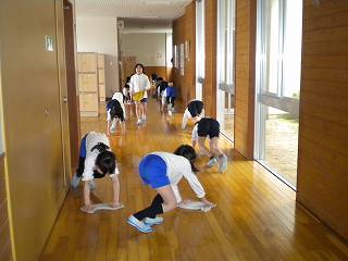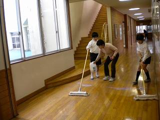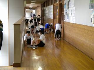 廊下の雑巾がけは一方向に進むなど、協力してできました。