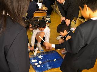 2月25・28日に「内灘凧の会」の方々をお招きし、凧作りを行いました。児童は、会員の方々の説明をよく聞き、楽しみながら作業に取り組んでいました。