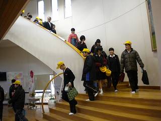 また、防火扉についている出入り口(ドア)を通ってきた6年生からは、「段差に気を付けて、押さないようにひとりずつ通り抜けることが大切。」という発言がありました。