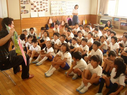アダム先生の自己紹介とユーモアたっぷりの本を2冊読んでもらい、楽しい時間を過ごしました。