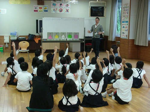 今日は1年生の英語の活動があり、ケリン先生といろいろな形を英語で楽しく覚えました。