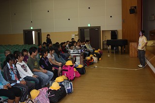 入所式では、初めての宿泊の心がまえをしっかりと聴きました。