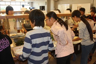 みんな目をきらきらさせながら、おいしそうなおかずを盛りつけます。