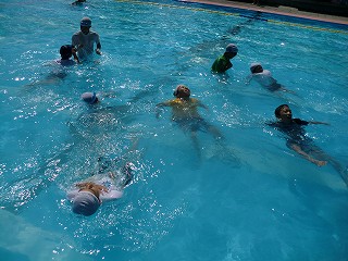 水着とは異なり、洋服を着たまま水の中に入るとうまく泳げないことを体験したり、体力を保ったまま、できるだけ長く浮いている方法を習って、実際にやってみました。どちらも大変難しいです。水の中に落ちると、とても危ないことがわかりました。