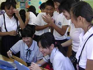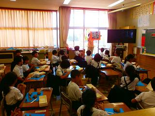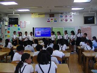 6年生との交流会では、自分たちの国や学校についてプレゼン紹介しあいました。