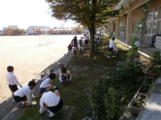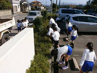 学年ごとに場所を決め、ごみ拾いと草集めをしました。