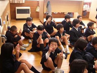 授業が終わった放課後に、たがいに声かけしながら練習をしています。