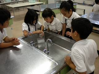 家庭室の流し台で、算数のお勉強です。