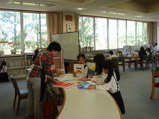 オリエンテーション後から本の貸し出しを開始。さっそく朝読書で読む本を借りていました。