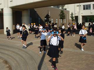 7:30~8:00の間、児童玄関(ふれあいの小径)にて日食の観測会がありました。