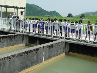 バス遠足で鶴来浄水場を見学してきました。手取川の水をきれいにして、内灘町まで送水管を通って届くことがわかりました。24時間体制で安全な水を監視していることにもびっくり!