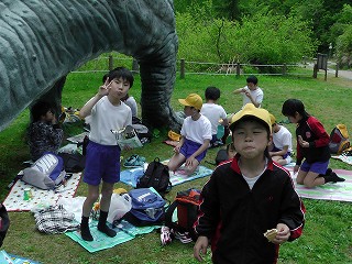 お弁当は毎年恒例の白山恐竜パーク。化石発掘体験では葉っぱの化石など意外とたくさん見つけて持ち帰ることができました。天気にも恵まれさわやかな一日でした。
