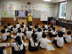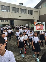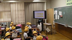 地震に続いて、津波から身を守る避難訓練を初めて実施しました。本校の校舎は海面から25メートルの高さにあります。避難訓練の計画段階では、何度もどのように避難するかを練り直しをして訓練日を迎えました。地震発生の緊急放送で、児童はいっせいに机の下にもぐって頭や体を守る体制になり、揺れがおさまるのを待ちました。その後、津波発生との放送で、全児童が校舎2階に避難しました。初めての経験でしたが、静かにすばやく避難することができました。訓練後は教室にもどり、放送とDVDで津波の恐ろしさと避難の仕方を学習しました。今日学習したことをおうちでも家族の皆さんに教えてくださいと伝えましたが、子どもたちは話したでしょうか。