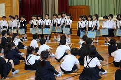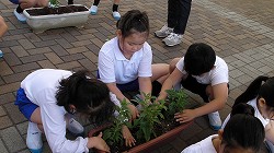 本日の3時間目に、1年生が「人権の花」の取組をしました。