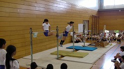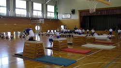 今日の3時間目に、4年生が5年生から器械運動の技を教わりました。