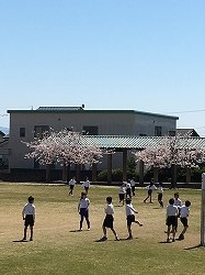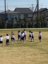 今日はとても良い天気です。子ども達は、元気いっぱい運動場で体を動かしています。