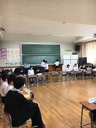 について話し合いが行われました。各クラスの代表・委員会の委員長が自分の思いや考えを分かりやすく伝えていました。