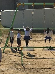 清湖小学校の子ども達は元気いっぱいです。昼休みになると、100人以上の子ども達が運動場で遊んでいました。