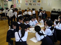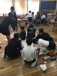 6年生の卒業まであと10日あまり、6年生がゲストティーチャーをお迎えして、卒業式で胸に飾る水引のコサージュを作りました。最初は紐を結ぶのに苦戦している様子が見られましたが、ゲストティーチャーの先生や友達に教えてもらいながら、きれいなコサージュができました。卒業の準備が進んでいくことが心強い半面、ちょっぴりさびしい思いです。