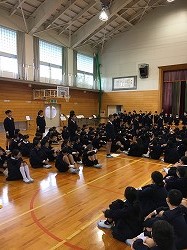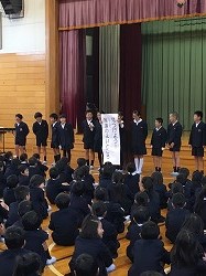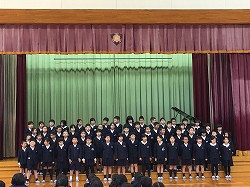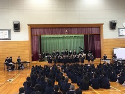 元気な校歌で全校集会が始まりました。