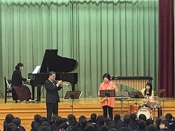ディズニーのメドレーや「もみじ」「ふるさと」など、児童のよく知っている曲を演奏してくださいました。楽しい時間は、あっという間に過ぎていきました。