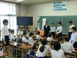 地震に続いて、津波から身を守る避難訓練を初めて実施しました。本校の校舎は海面から25メートルの高さにあります。避難訓練の計画段階では、何度もどのように避難するかを練り直しをして訓練日を迎えました。地震発生の緊急放送で、児童はいっせいに机の下にもぐって頭や体を守る体制になり、揺れがおさまるのを待ちました。その後、津波発生との放送で、全児童が校舎2階に避難しました。初めての経験でしたが、静かにすばやく避難することができました。訓練後は教室にもどり、放送とDVDで津波の恐ろしさと避難の仕方を学習しました。今日学習したことをおうちでも家族の皆さんに教えてくださいと伝えましたが、子どもたちは話したでしょうか。