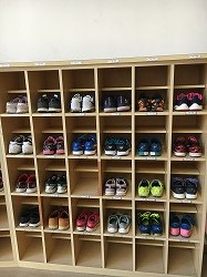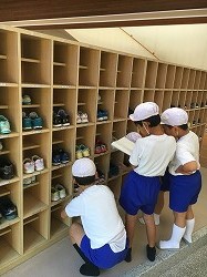 6年生が、自主的に児童玄関の下足箱をきれいに揃えてくれてます。