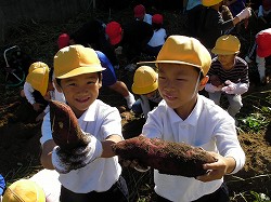 がんばったご褒美でしょうか、今年は例年になく大きくて、色の濃いサツマイモがたくさん収穫できました。この後、おいしく料理をしてみんなで食べることになっています。