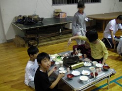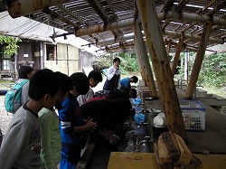二日目は、みんなで野外炊飯をしました。自分たちで火をおこし、飯盒でご飯を炊き上げました。おいしかったなぁ。
