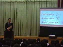 集会では校長先生があいさつの大切さについて話をしてくれました。