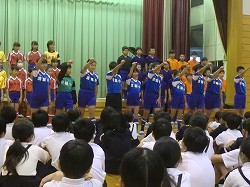 児童集会では、サッカー交歓会の壮行会を行いました。
