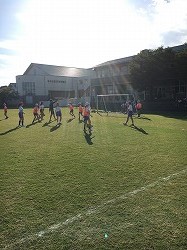 今日、内灘町のサッカー場で「サッカー交歓会」が行われました。清湖小の6年生も全員参加しました。