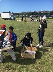 そして、いよいよ自分で作った凧の試し飛ばしの時がきました。会員の方に飛ばし方を習い、みんな前だけを見て全力疾走!!