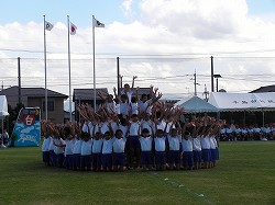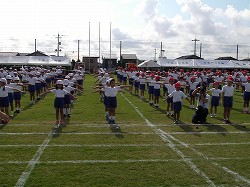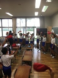 運動会まであとわずか、今日初めて運動場で応援練習を行いました。