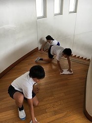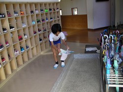 終了後、足ふき雑巾をそっと片づけてくれる6年生の優しい心に感動しました。
