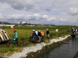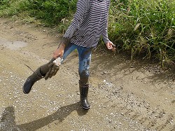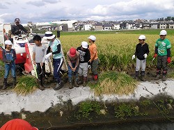 最近の雨のため、田んぼはぬかるみ状態でした。でも、鎌を上手に使いながら、みんな仲良く稲刈りができました。この後、学年PTAで餅つき大会をする予定になっています。