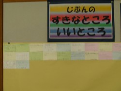「いつも笑顔」「友だちに優しい」「最後まであきらめない」など、たくさん自分の良いところを書いてくれました。どんどん自分に自信をもって、頑張ってほしいと思います。