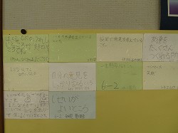 そこで、校長室前に自分の良いところを書いてもらい、掲示するコーナーを設けました。すると、6年生が真っ先に書いてくれました。