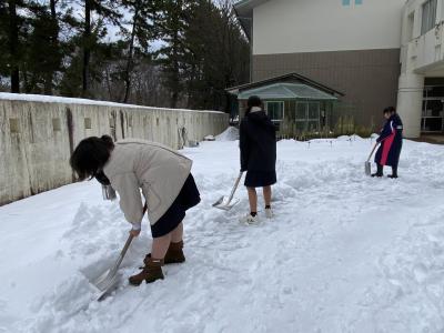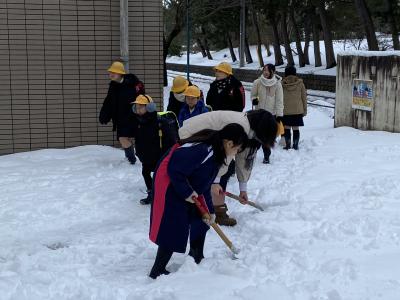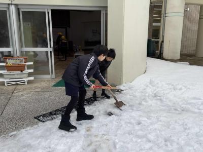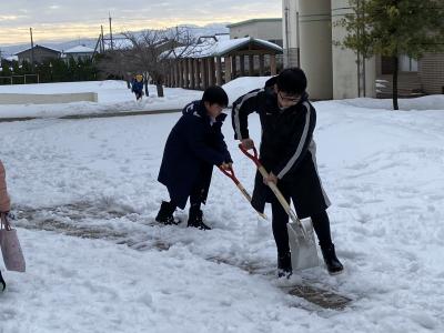 玄関前までの除雪をしていると、あいさつ運動に出てきた6年生が、何も言わずに手伝ってくれて、学校の入り口から玄関までの通路を作ってくれました。