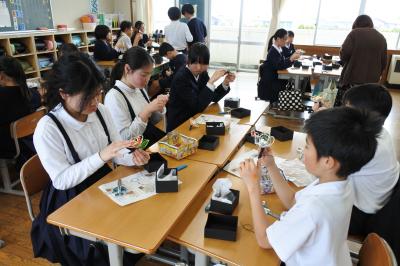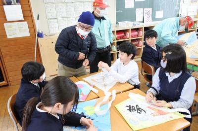 2月25・28日に「内灘凧の会」の方々をお招きし、凧作りを行いました。児童は、会員の方々の説明をよく聞き、楽しみながら作業に取り組んでいました。
